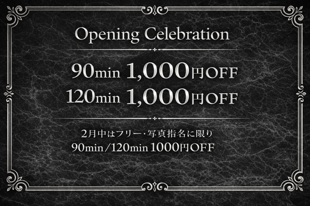 ⏰ オールタイムで90分、120分コースが、1,000円OFF!