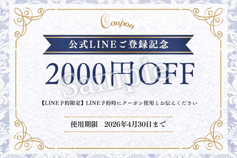 公式LINE予約限定でフリー・写真指名に限り90分コース以上が2000円OFF